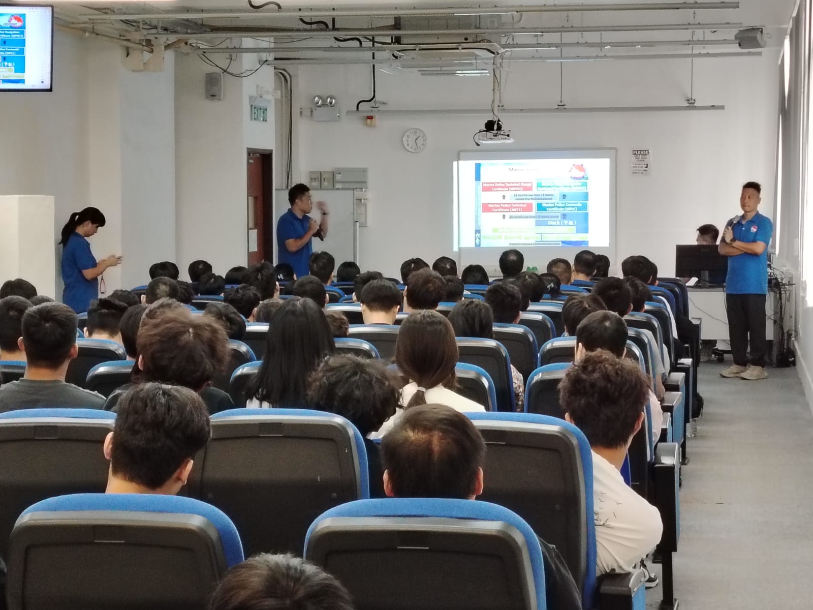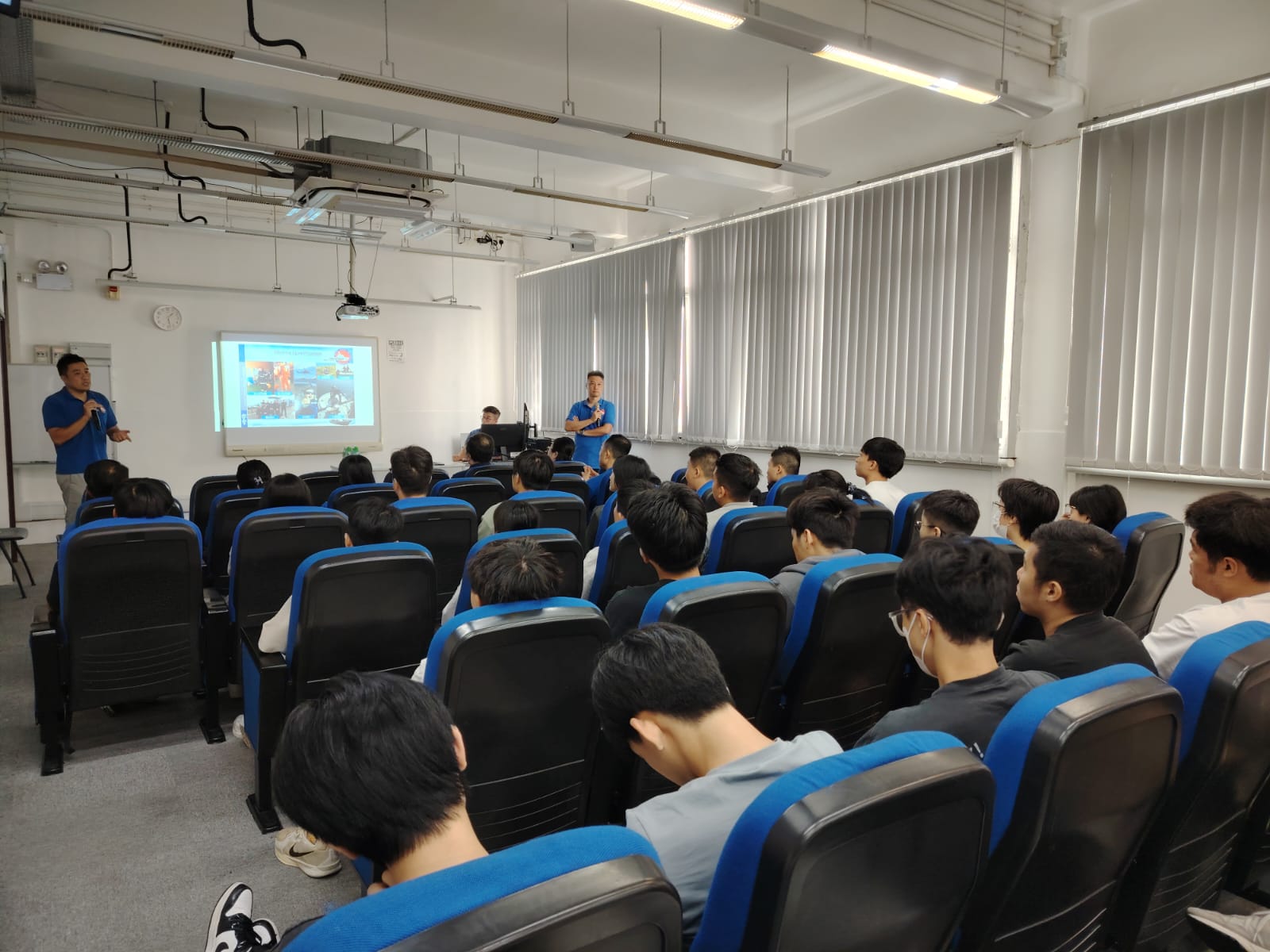 「#水警學長計劃」(MPMP) 嘅一班 #學長 及 #學長助理 喺今日嚟到 #香港科技專上書院(科專HKIT)│深水埗總校,連續舉辦兩場水警介紹及投考分享講座,向【#學警預備訓練】課程嘅同學仔介紹 #水警職責、#水警學長計劃、#警務理念、#船隊規模,以及 #入職條件等,等同學仔對 #水警崗位 及 #投考警察技巧,有更深入了解
