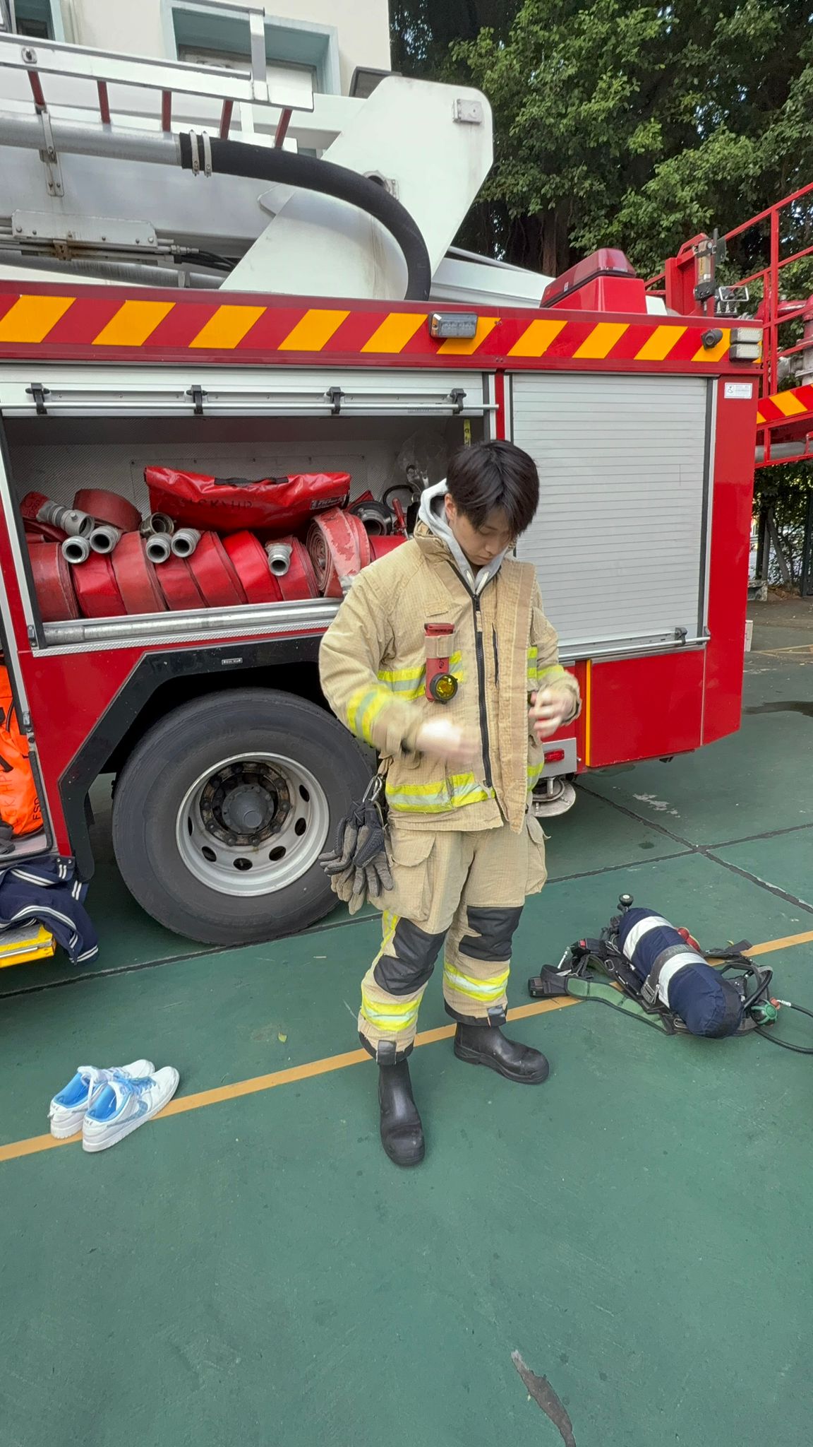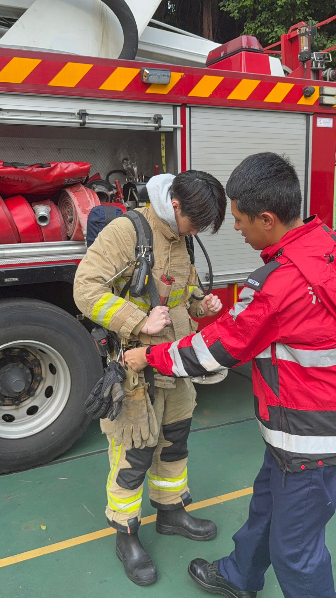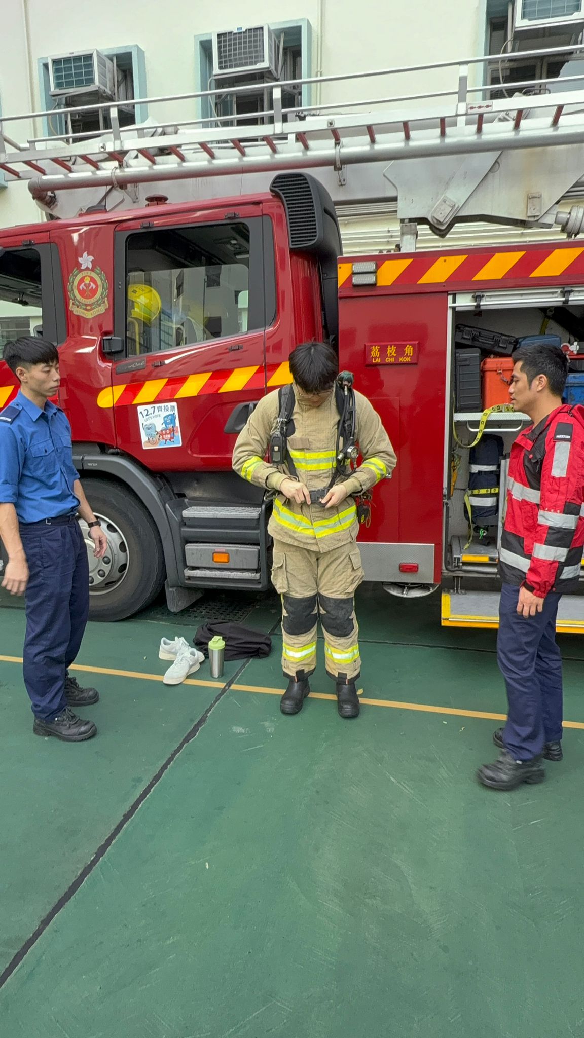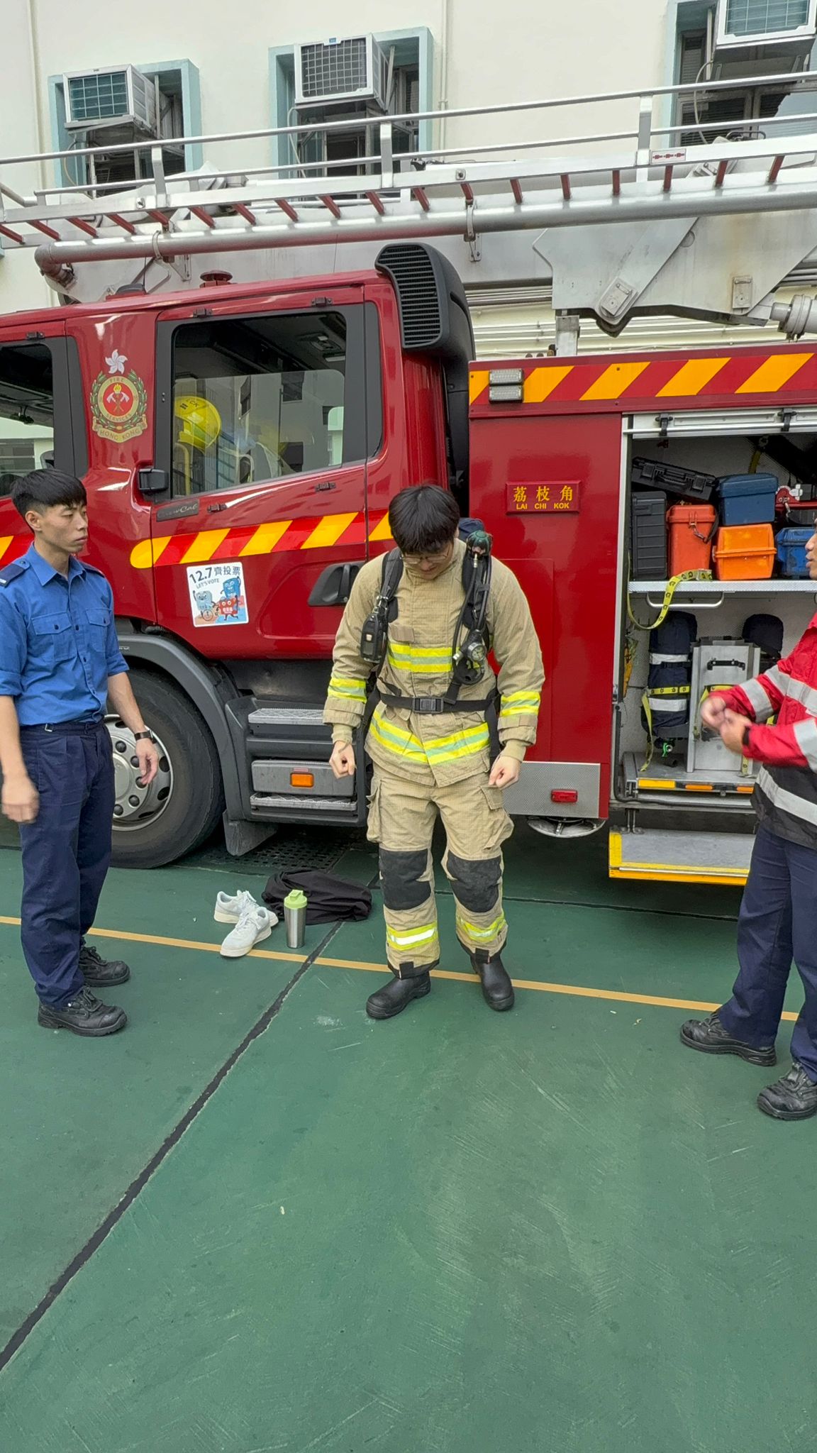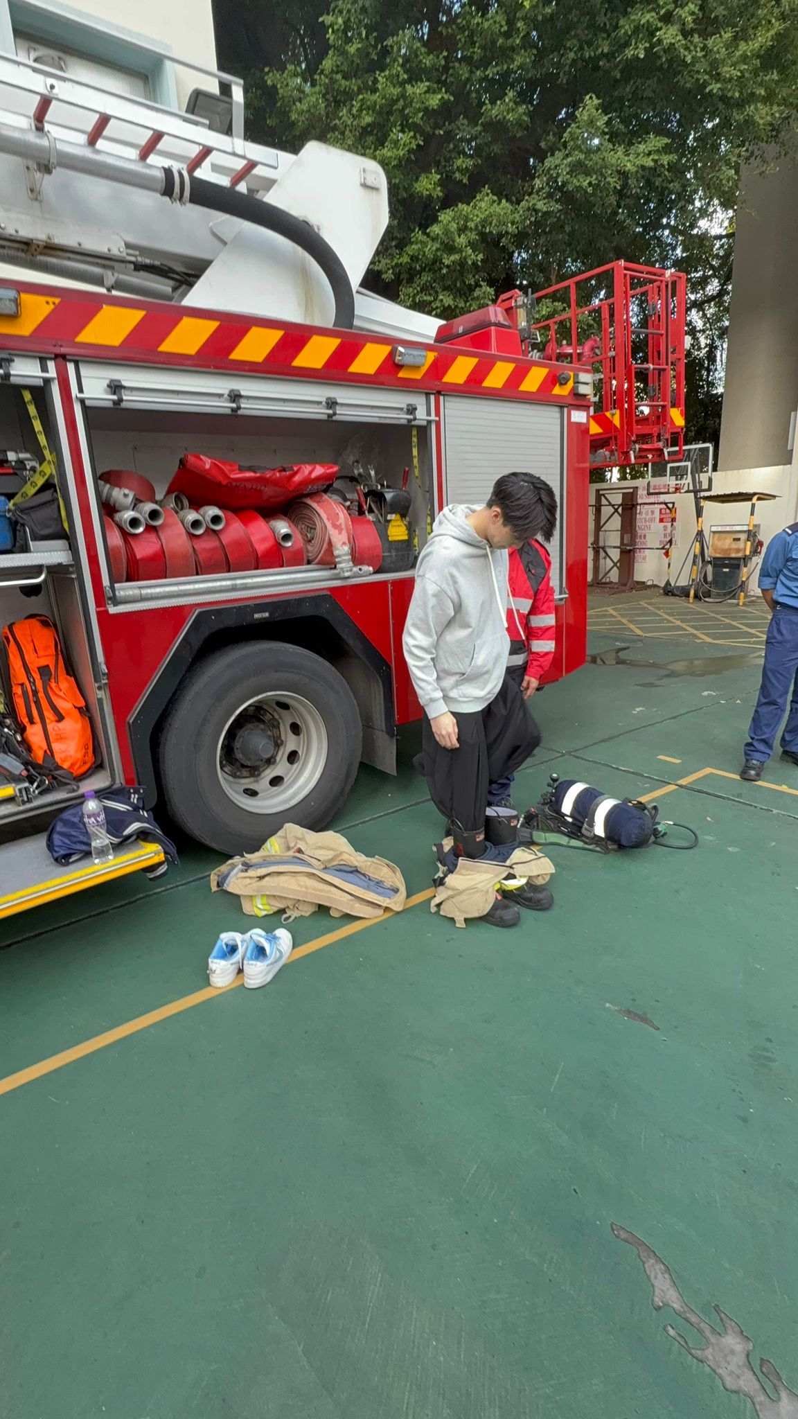 在參觀 #荔枝角消防局 的過程中,#消防員/ #救護員實務應用教育文憑課程 同學更親身嘗試穿著 #消防員 的 #黃金戰衣,體驗 #消防員 的 實際工作。