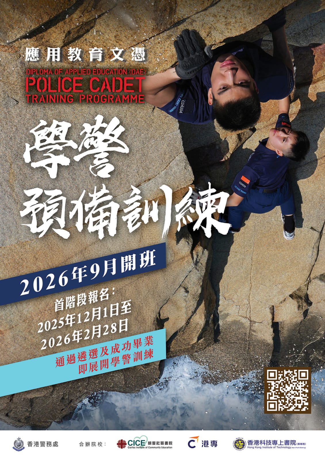 2026/27學年「應用教育文憑 - #學警預備訓練」課程(第三屆)將於2026年9月開班,首階段報名日期由2025年12月1日至2026年2月28日。